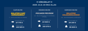 Péntek estig 46 csapat teljesítette az 5 darab 10 kg-os határt, 485 darab halat fogtak összesen, ebből 126 darab 15+-os hal. 34 darab 20+os halat regisztráltak, míg 25+-os halból 4 darab van eddig.